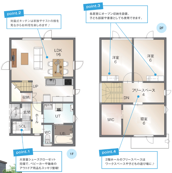 家族の交流が増えるオープン式対面キッチン、家計に優しいエコキュートといった最新設備などもたくさん揃えています👨👩👧👦