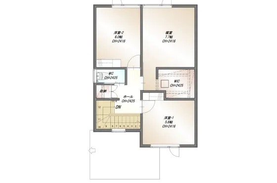 1階の洋室が2面開口という扉を全て開けるとリビングとしても使えて、閉めると1つの部屋として独立