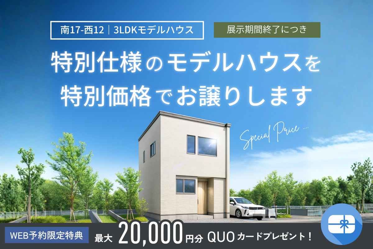 【中央区】南17条西12丁目 展示期間終了につき特別仕様のモデルハウスを特別価格でお譲りします。