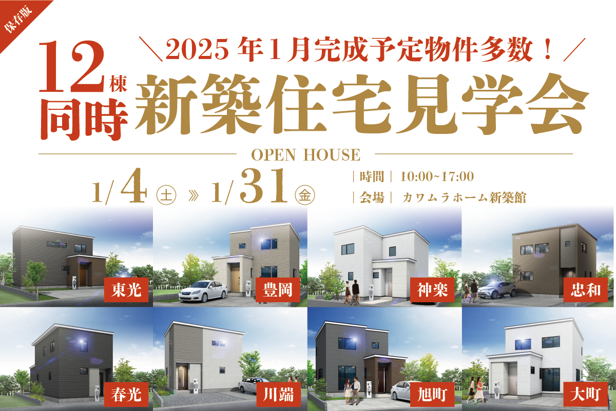 【新着】12棟同時新築住宅見学会開催!◆豊岡・神楽・東光・春光ほか◆12月・1月完成予定の物件も多数公開中!◆今なら来場特典8000円分のクオカードプレゼント中🎁◆